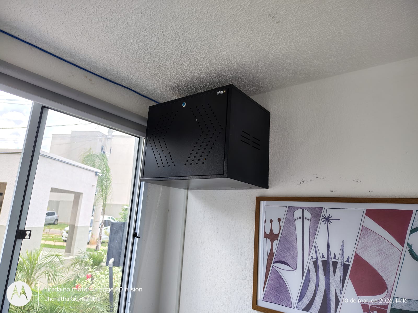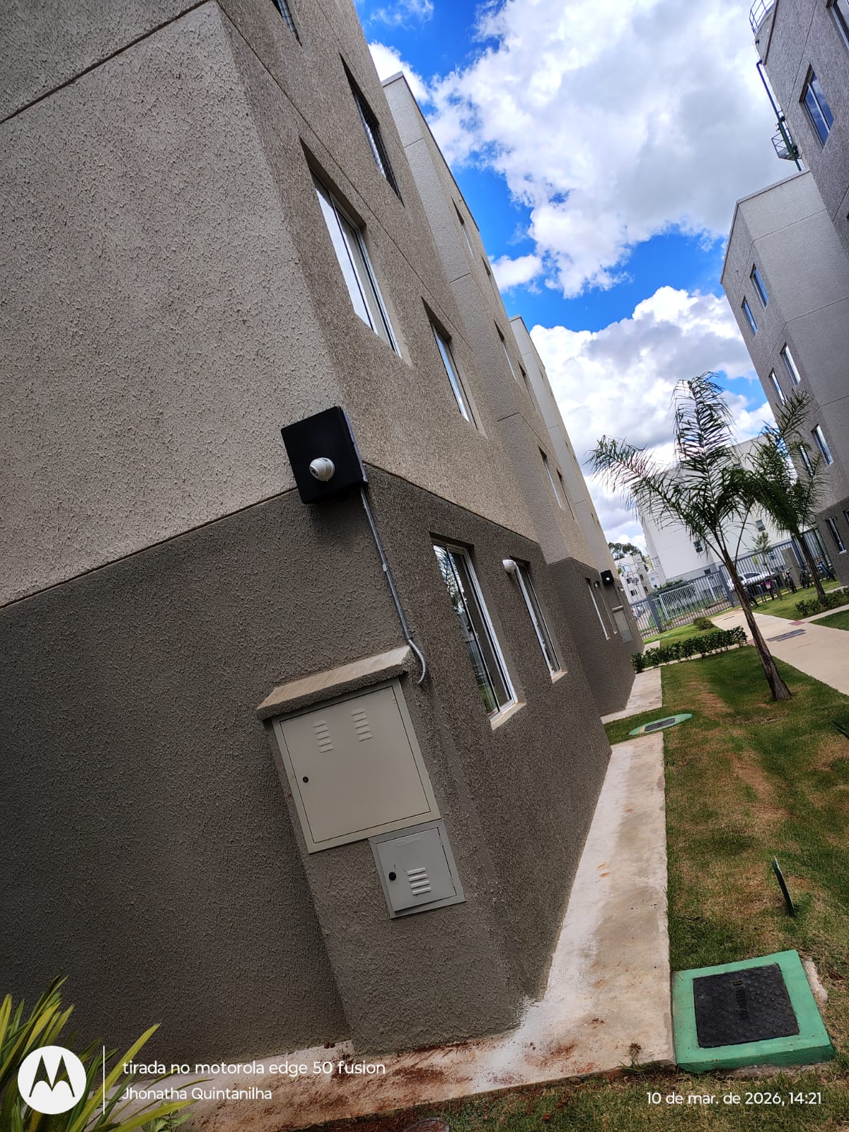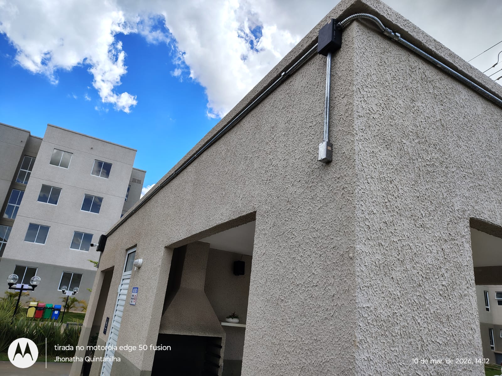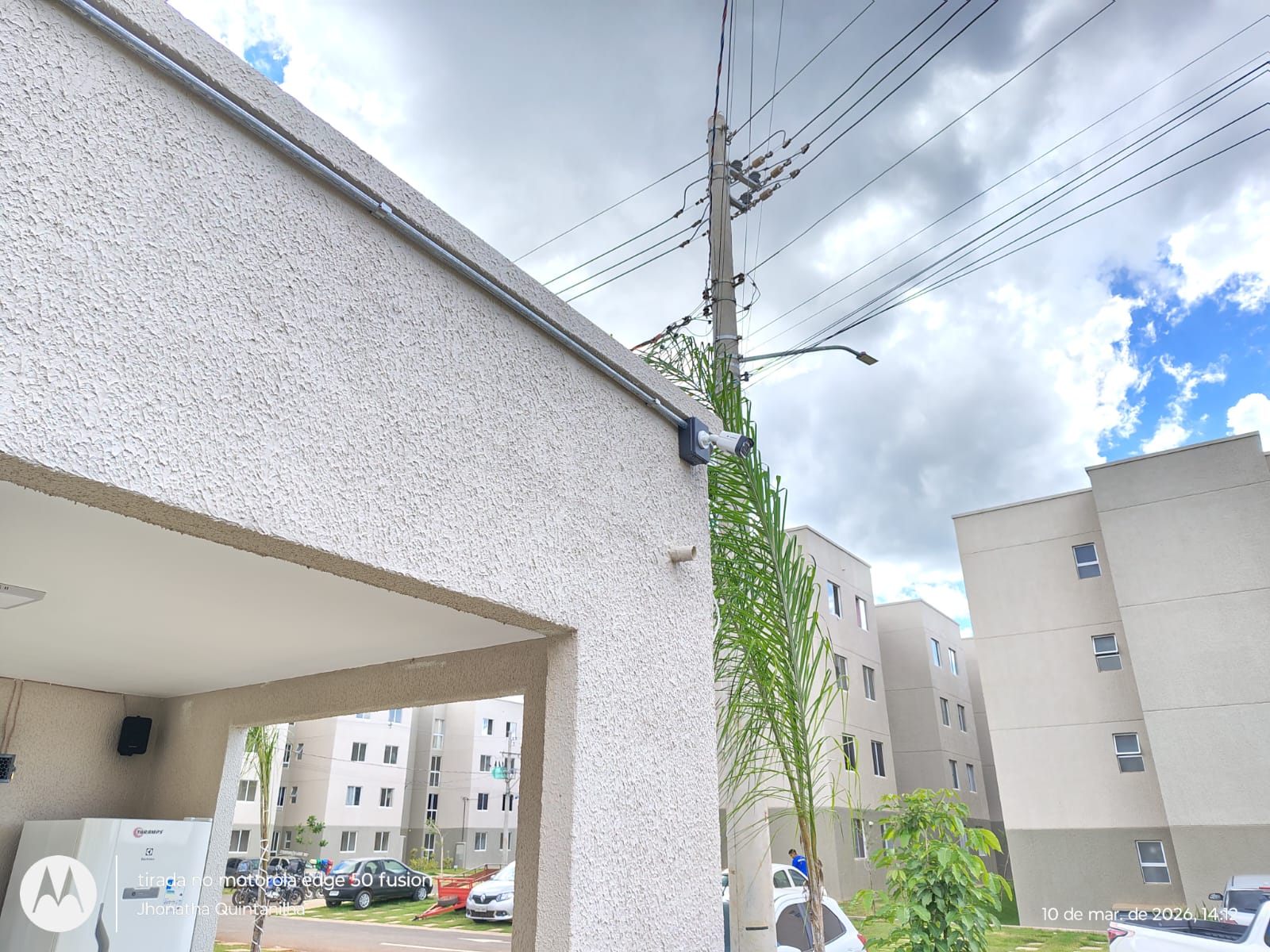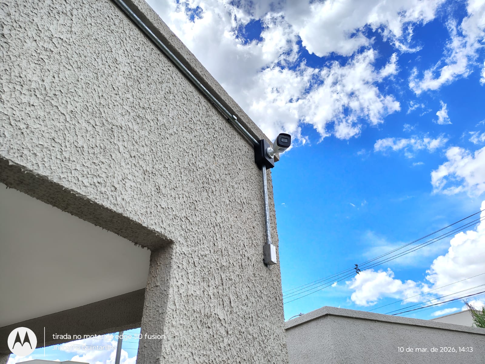 Câmera instalada na porta do bloco com infra em galvanizado e caixa hermetica